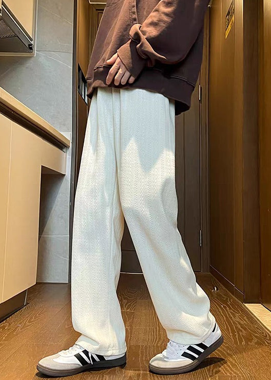 Simple Brown Pockets Solid Elastic Waist Chenille Mens Pants Fall