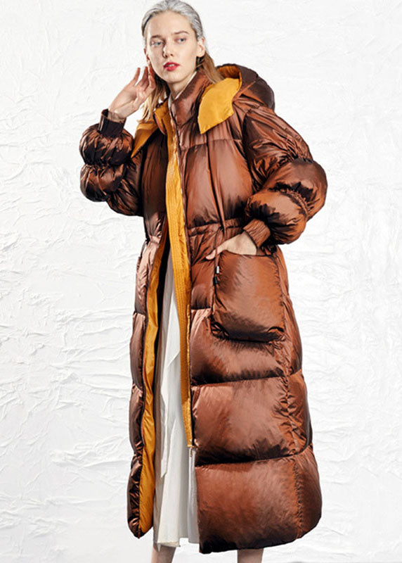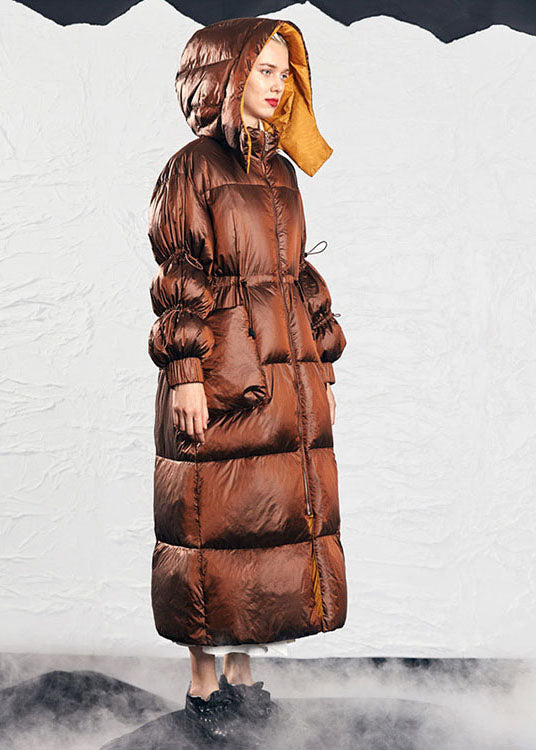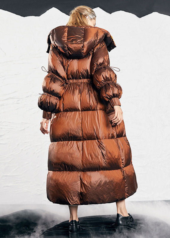 Einfacher Karamell-Mode-Kordelzug-Puffermantel mit dickem Winter-Entendaunen