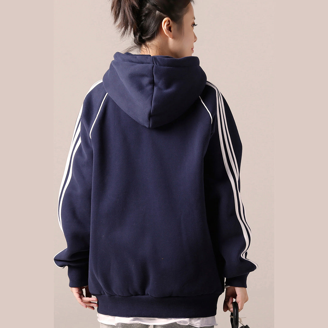 Einfache Baumwolltuniken für Damen 2019 Catwalk blaue Alltagsbluse mit Kapuze
