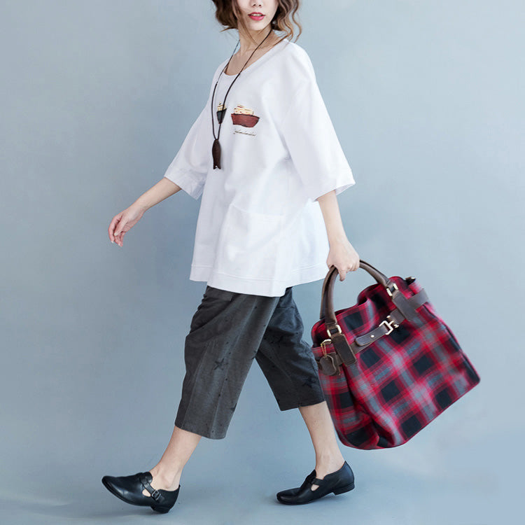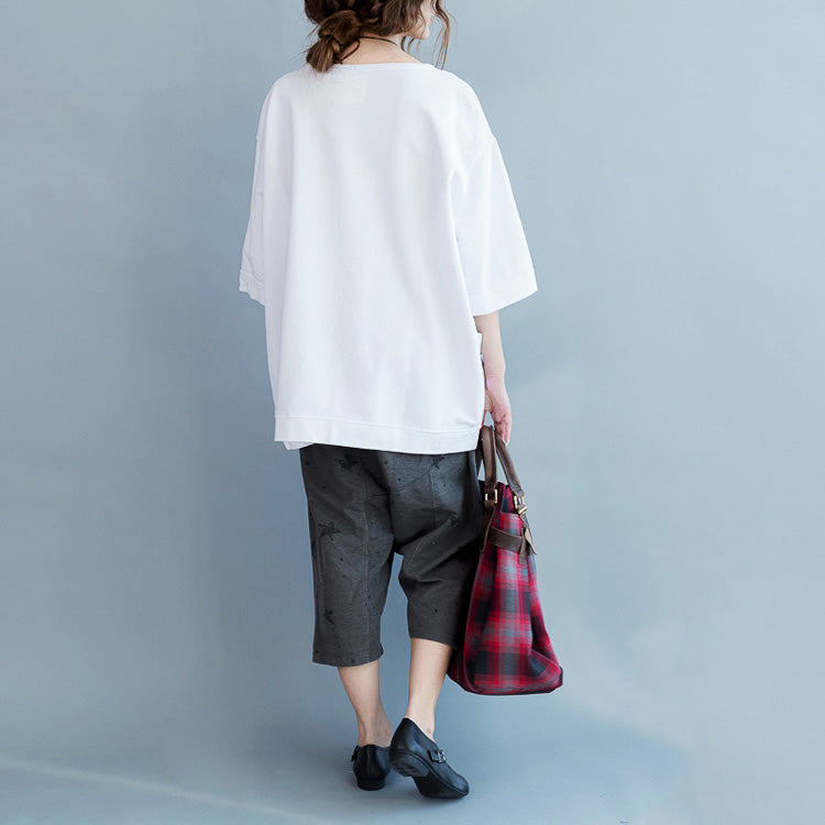 Einfache Halbarmtaschen Baumwolltops Damen Boho Stoffe weiße Tunika