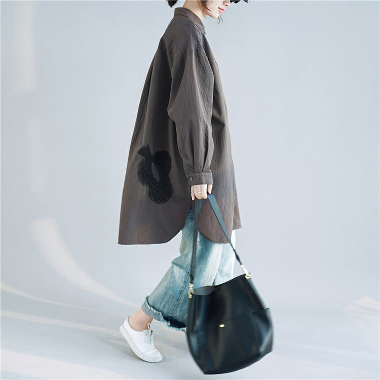Einfaches Tunika-Oberteil aus Baumwolle mit Reversstickerei Casual Fashion Ideas graue Art-Blusen
