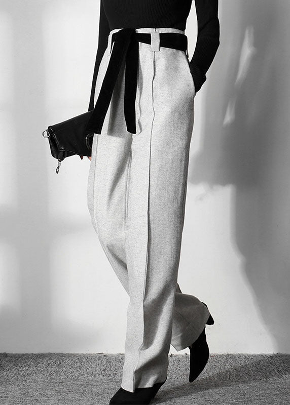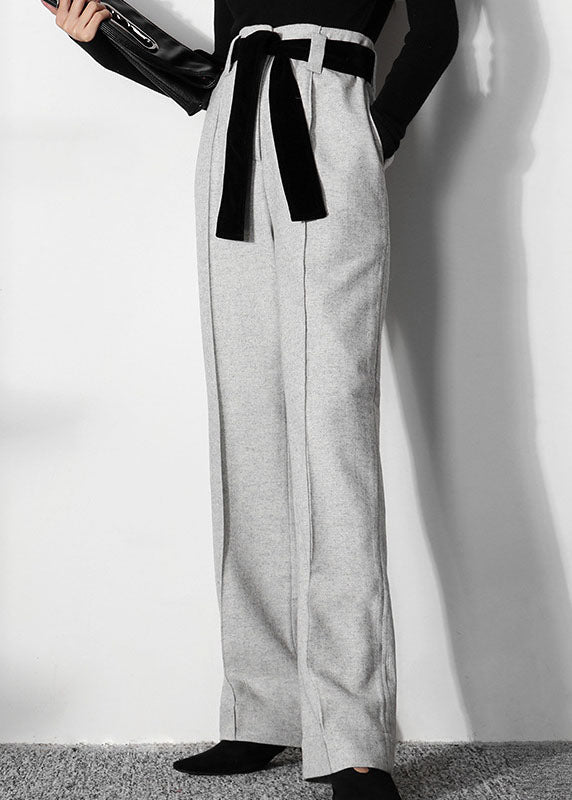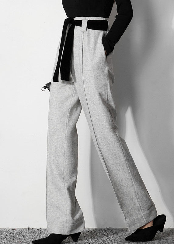 Einfache hellgraue Tunika Wollhose gerade Frühling