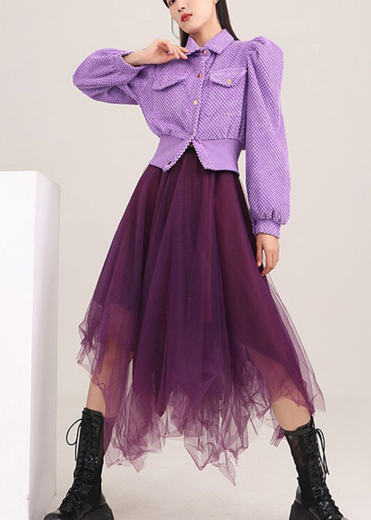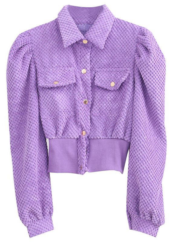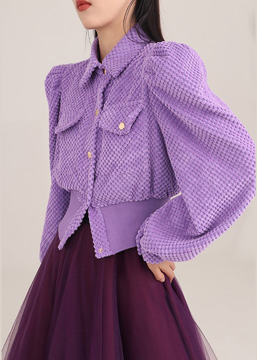 Einfacher lila Puffärmel-Knopfmantel Frühling