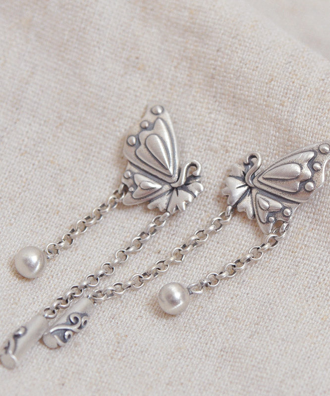 Simple Silk Sterling Silver Butterfly Tassel Xiangyun Drop Earrings