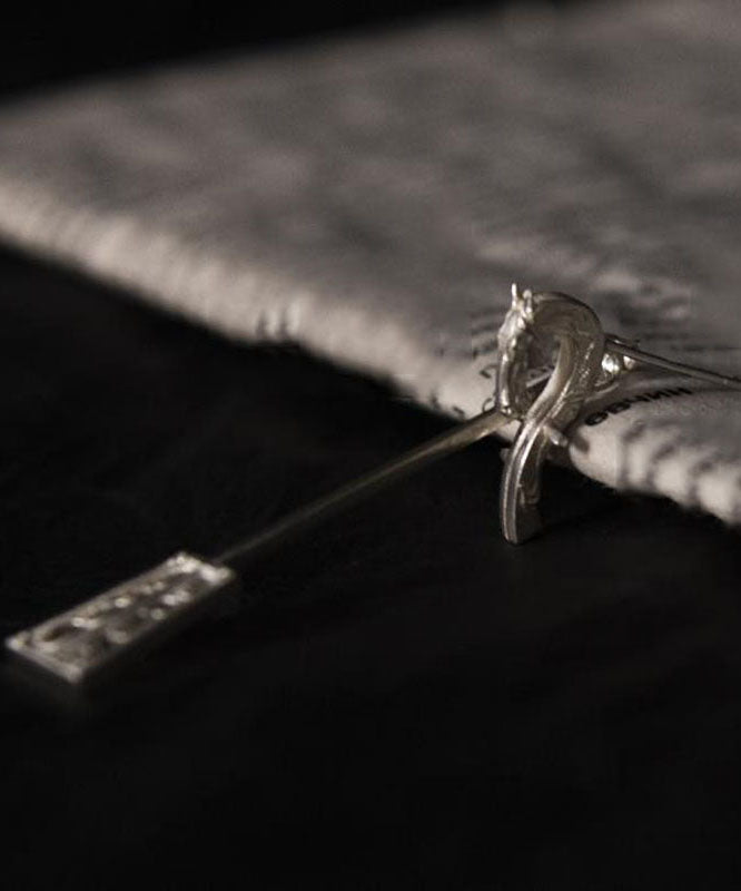 Simple Silk Sterling Silver Morin Khuur Drop Earrings