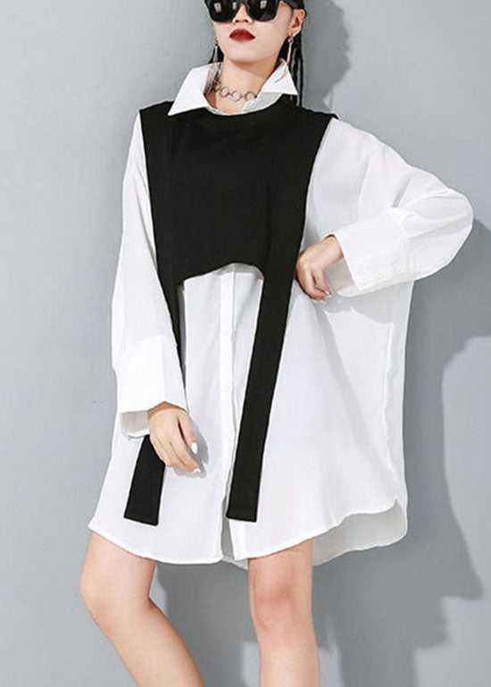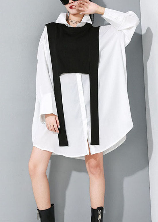 Einfaches weißes asymmetrisches Knopf-Baumwoll-Zweiteiler-Set