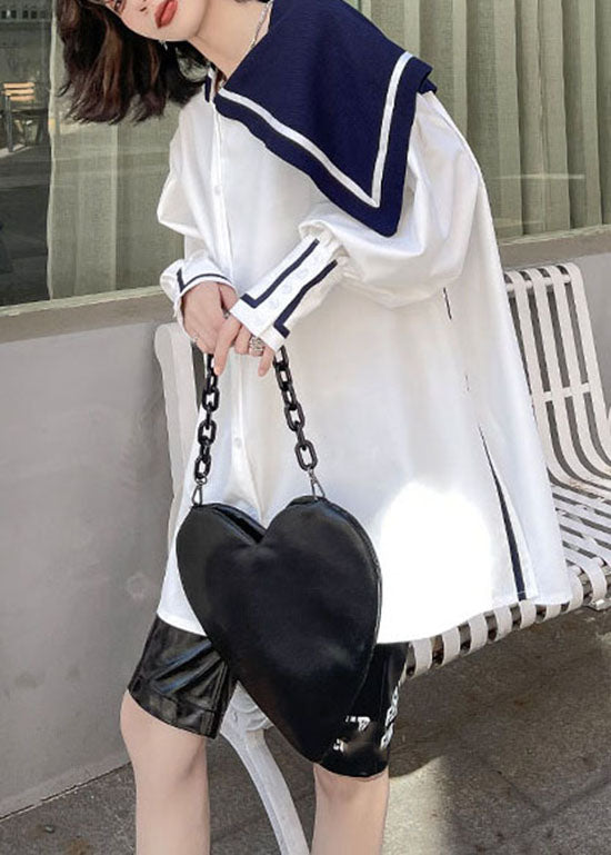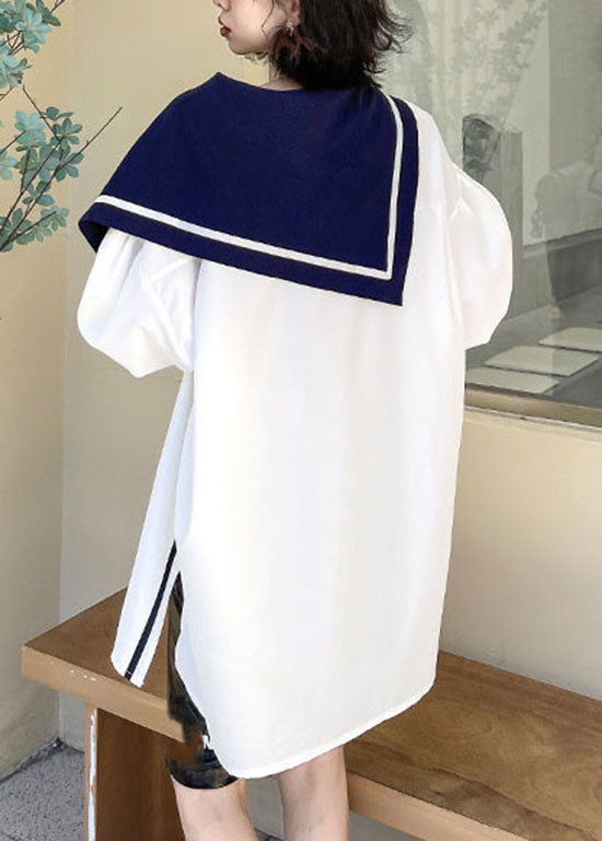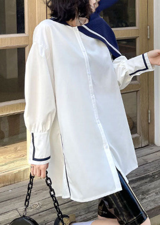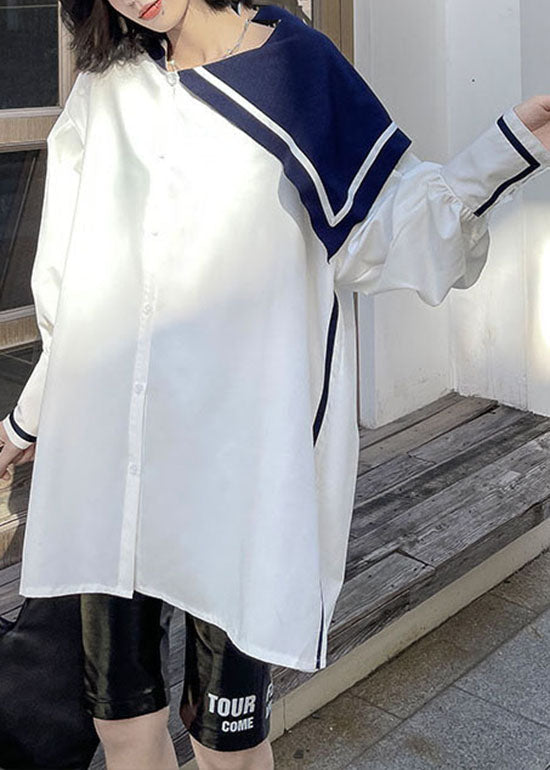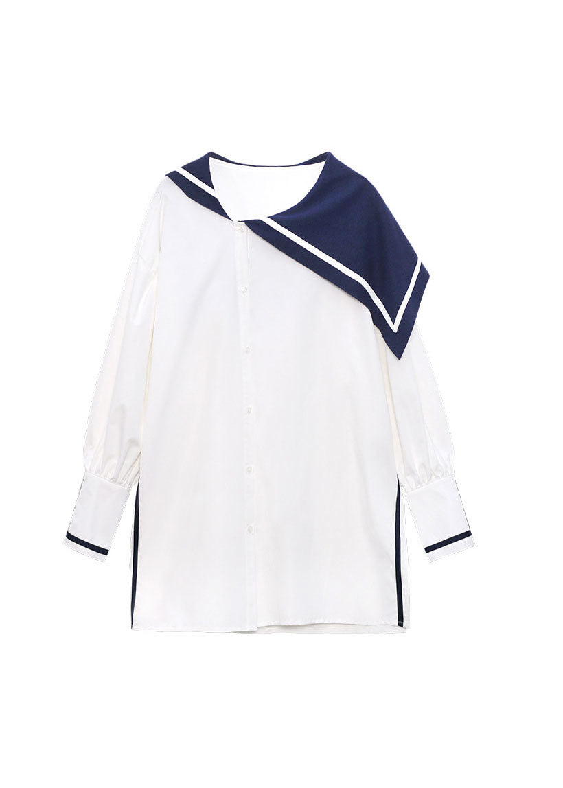 Einfaches weißes Knopf seitlich offen Matrosenkragen Asymmetrisches Hemd Frühling