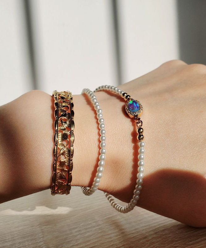Simple White Overgild Inlaid Gem Stone Pearl Graduated Bead Necklace