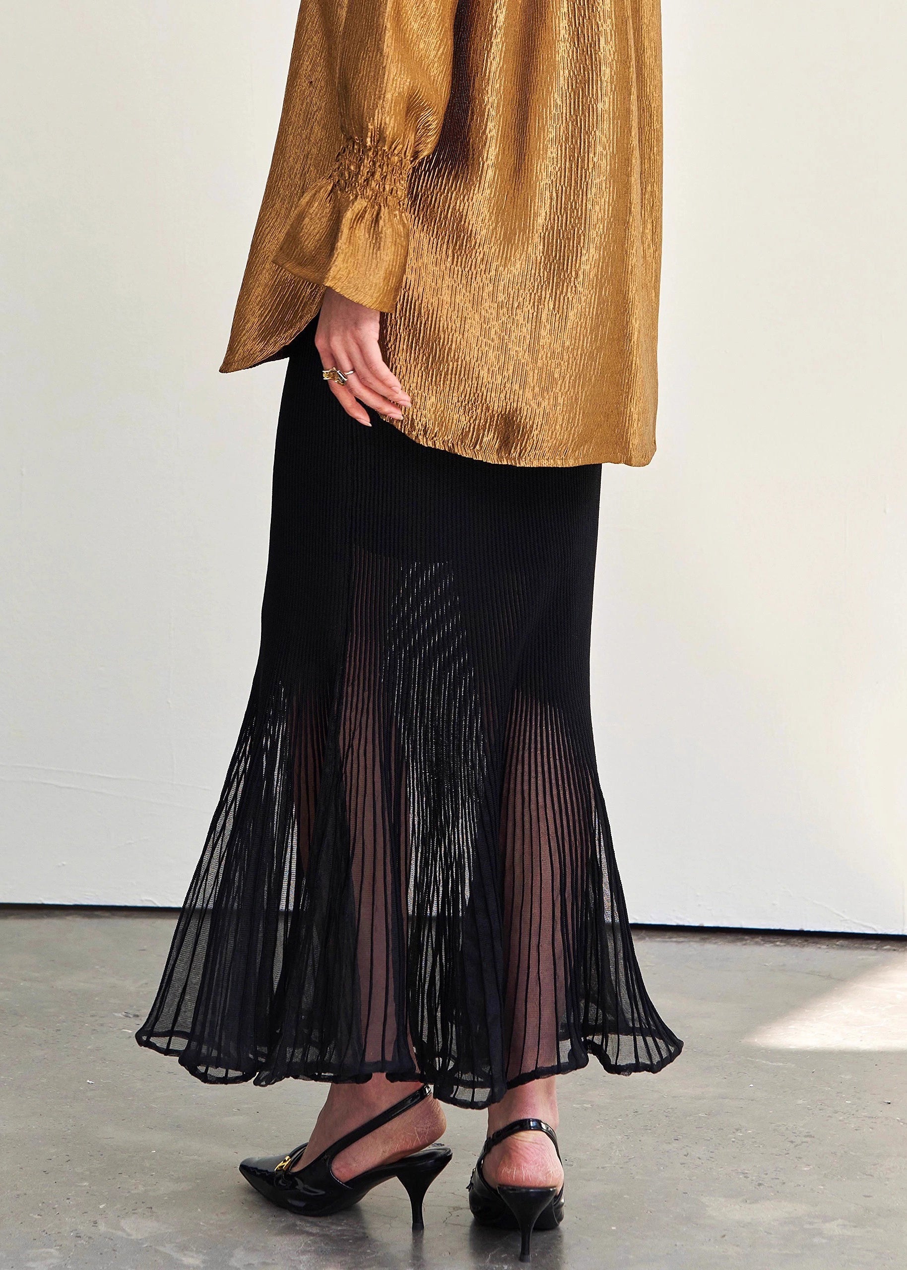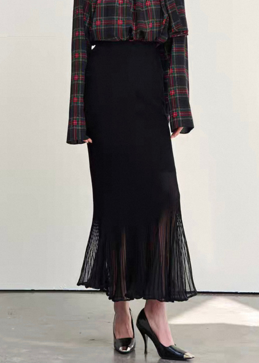 Slim Fit Black Wrinkled High Waist Chiffon Skirts Summer