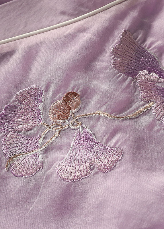 Slim Fit Lila Krawatte Taille V-Ausschnitt Seidentops Frühling