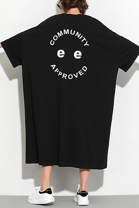 Stil schwarz bedruckte Baumwolltunika in Übergröße, Modeideen, Fledermausärmel, Maxi-Sommerkleid