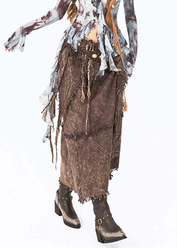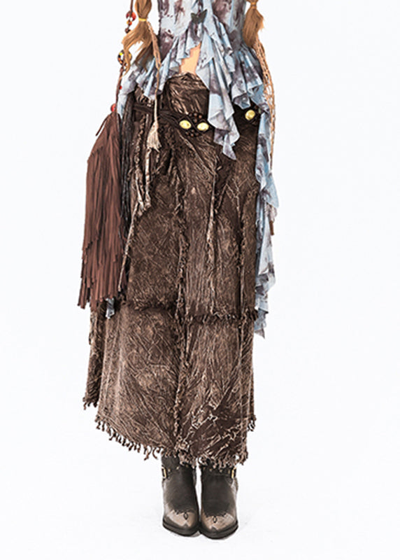 Style Coffee Patchwork Tassel Maxi Skirts Summer