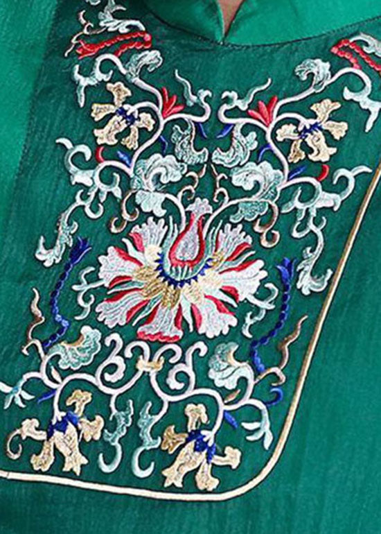 Stil Grün Stehkragen knopf Bestickt Chiffon Top Halbe Ärmel