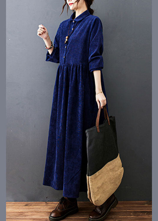Stil Marine Peter Pan Kragen Knopf Cord Langes Kleid Frühling