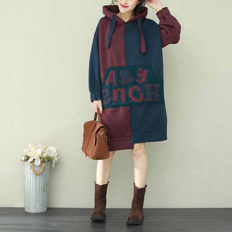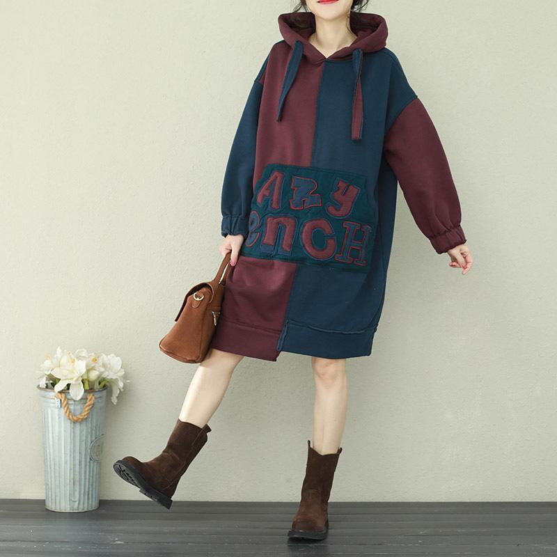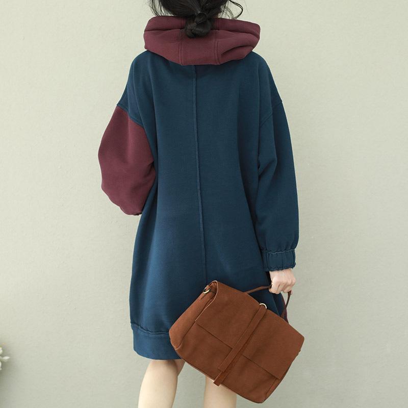 Stil Patchwork Baumwolltops Damen Plus Size Ärmel blau burgunderrot Alltagstops