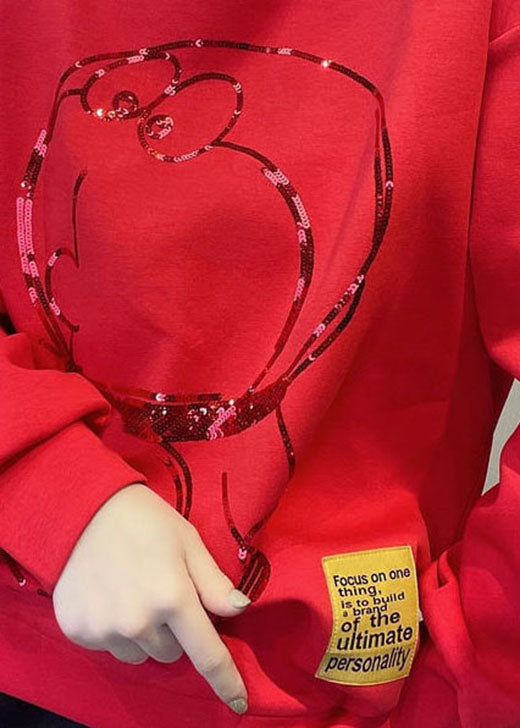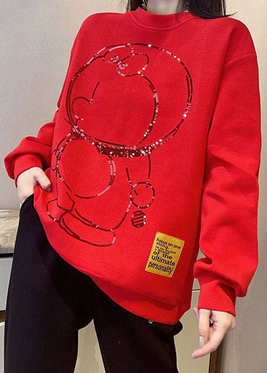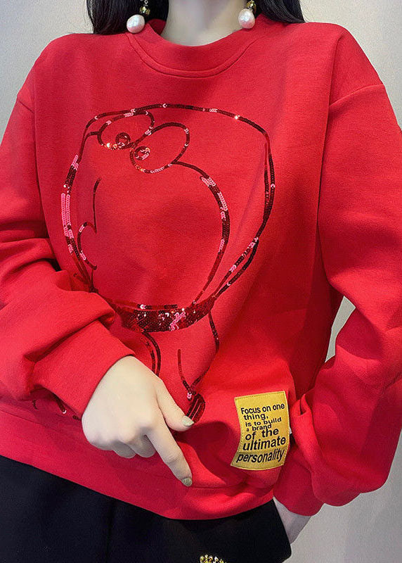 Stil Rot O-Ausschnitt Print Lose Herbst Pullover Streetwear