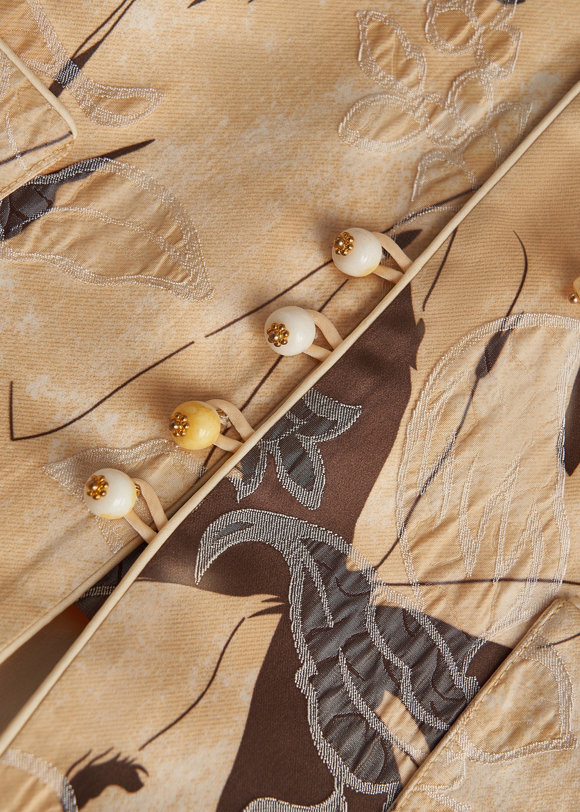Style Yellow Tasseled Jacquard Silk Coats Fall