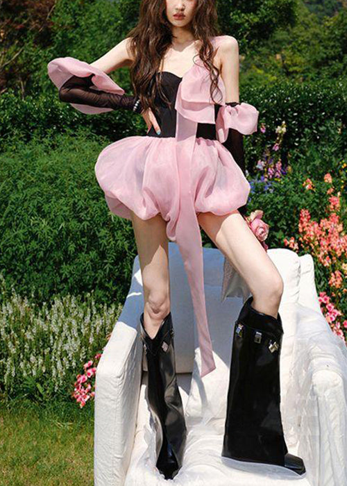 Stylish Black Bow Patchwork Cotton Mini Jumpsuit Summer