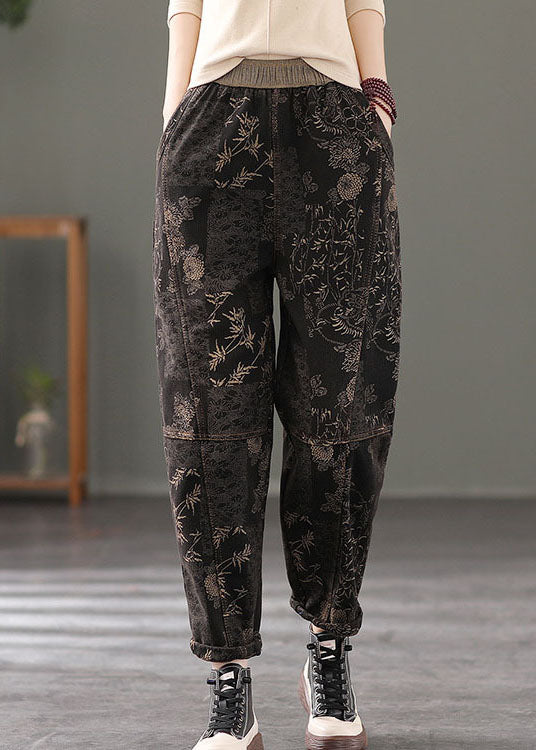 Stilvolle schwarze elastische Taille Print warme Fleecehose Winter