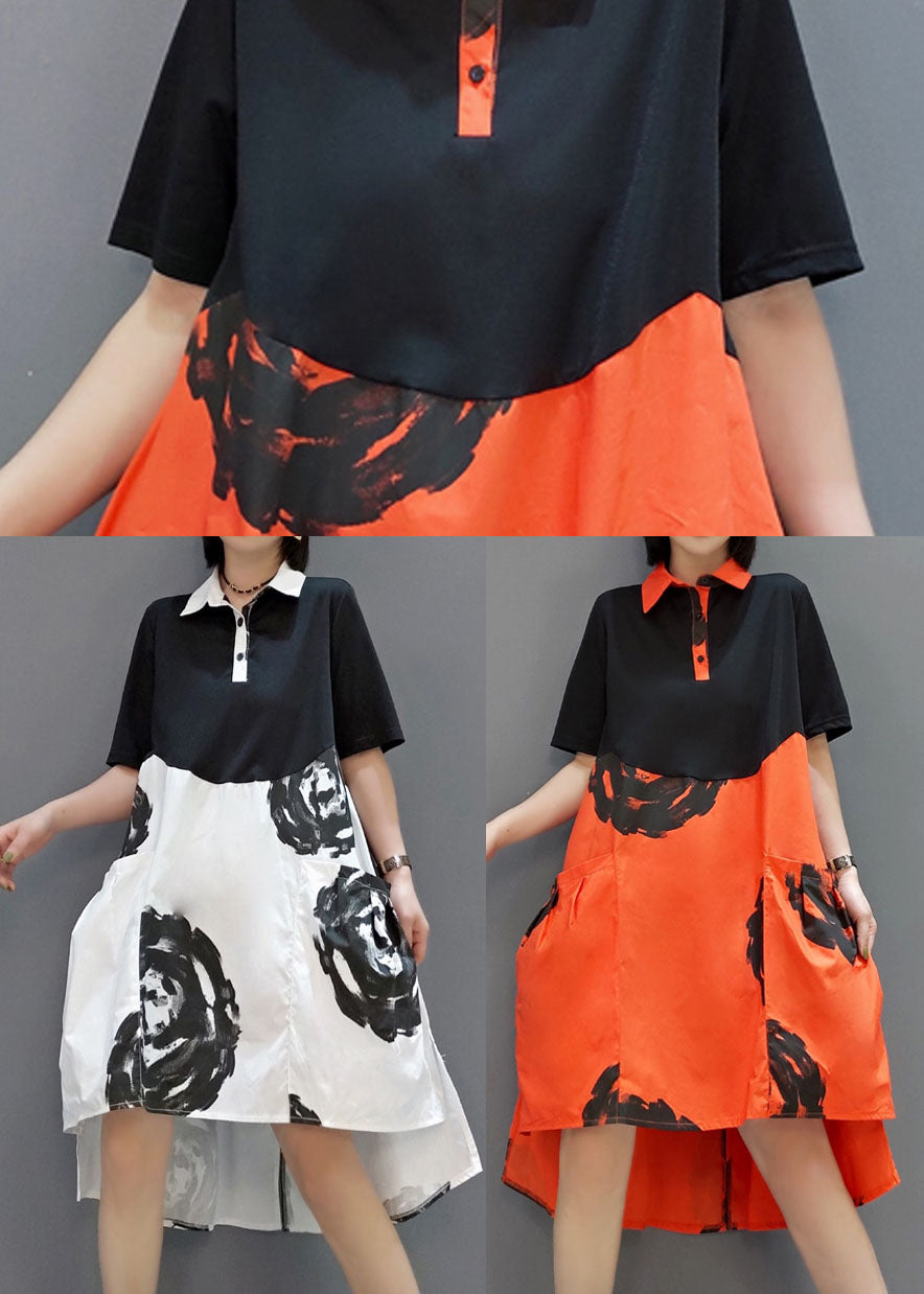 Stilvolle schwarz orange Knopf Peter Pan Kragen Hemd Kleider Frühling