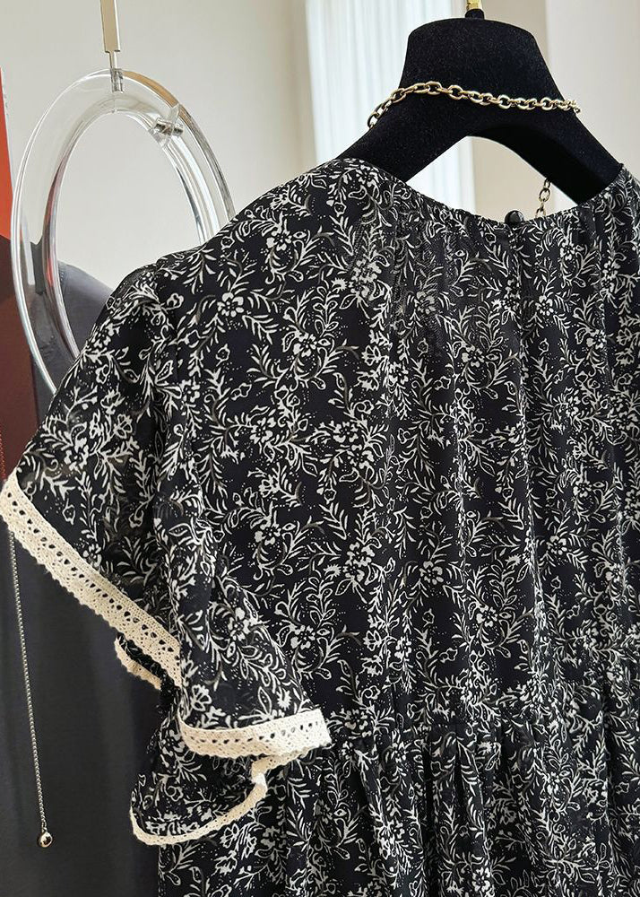 Stylish Black Print Chiffon Tanks Butterfly Sleeve
