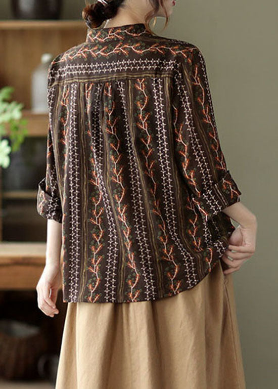 Stilvolle Kaffee Knopf Peter Pan Kragen Print Shirts Frühling