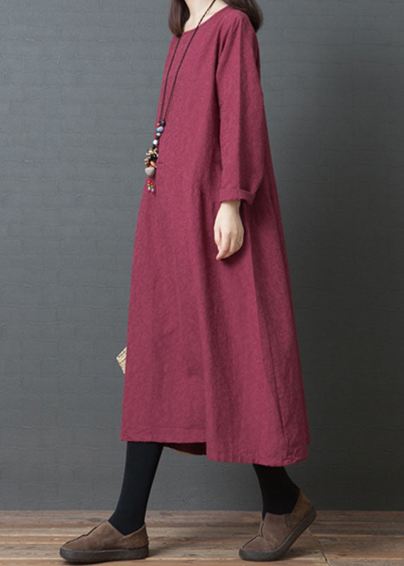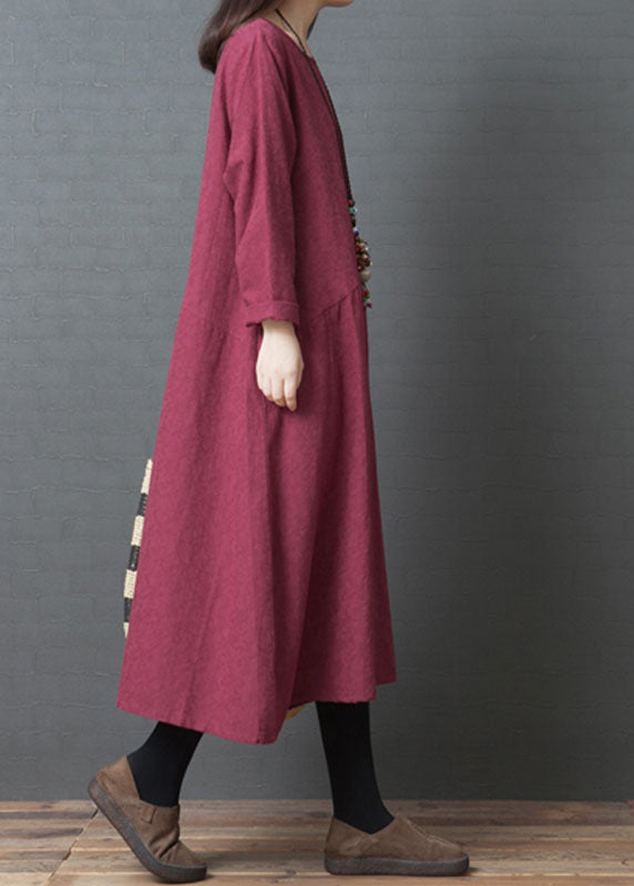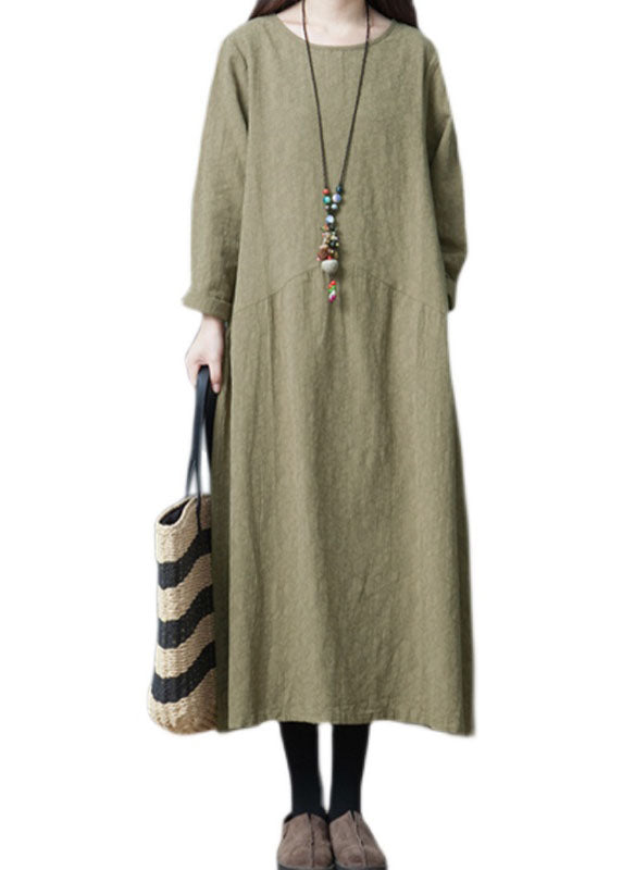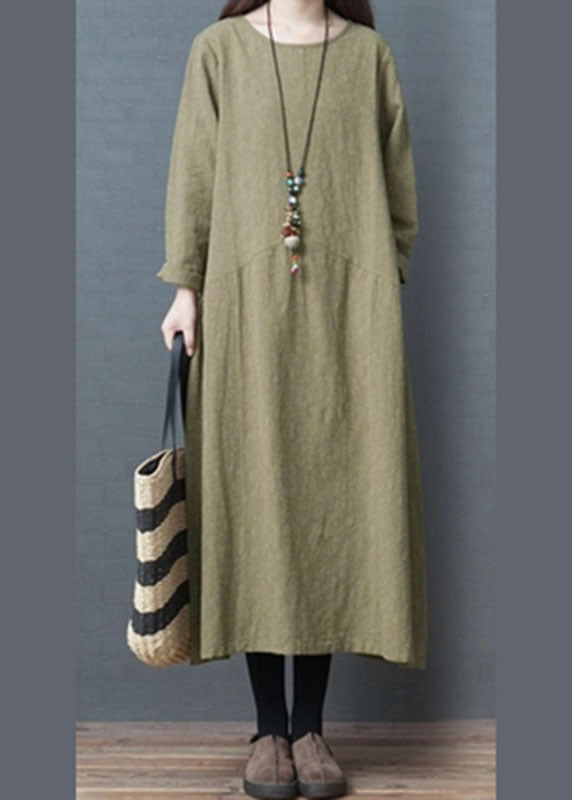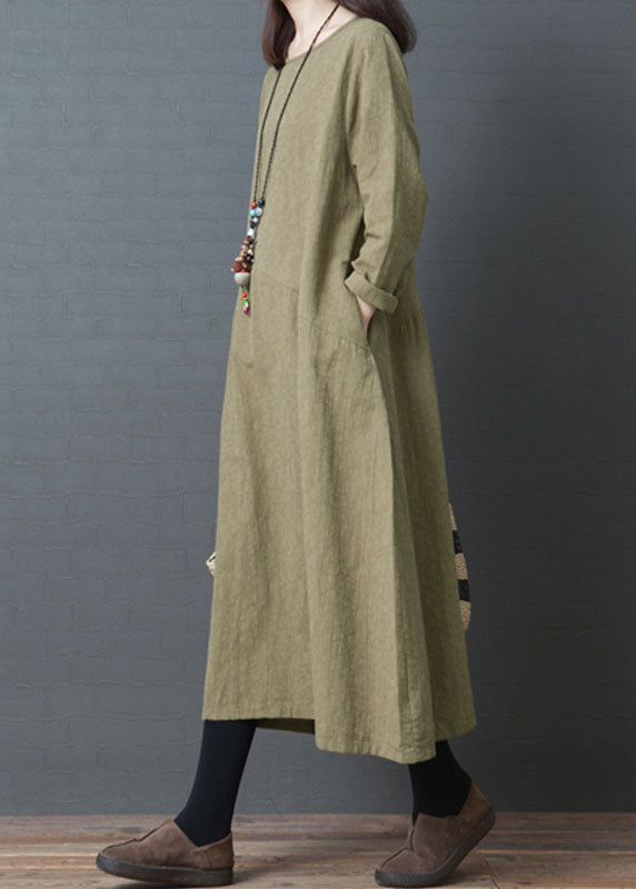 Stilvolle grüne O-Ausschnitt Patchwork Leinen Kleider Frühling