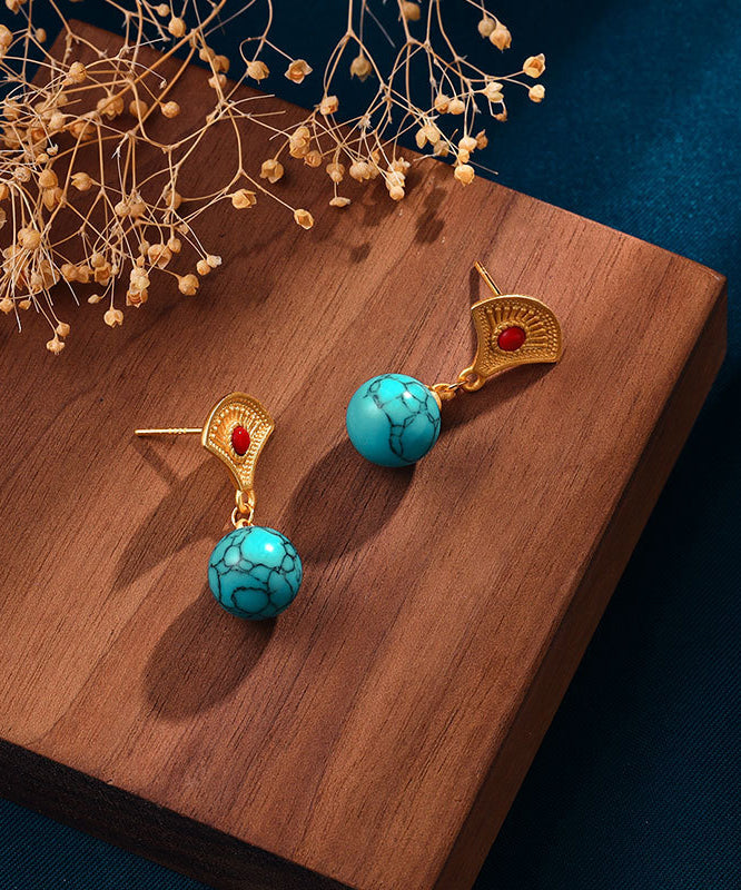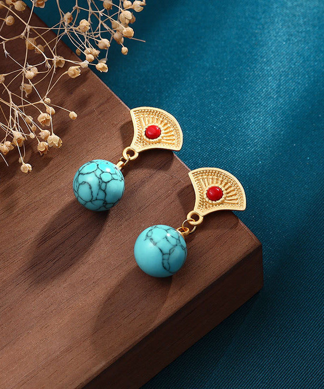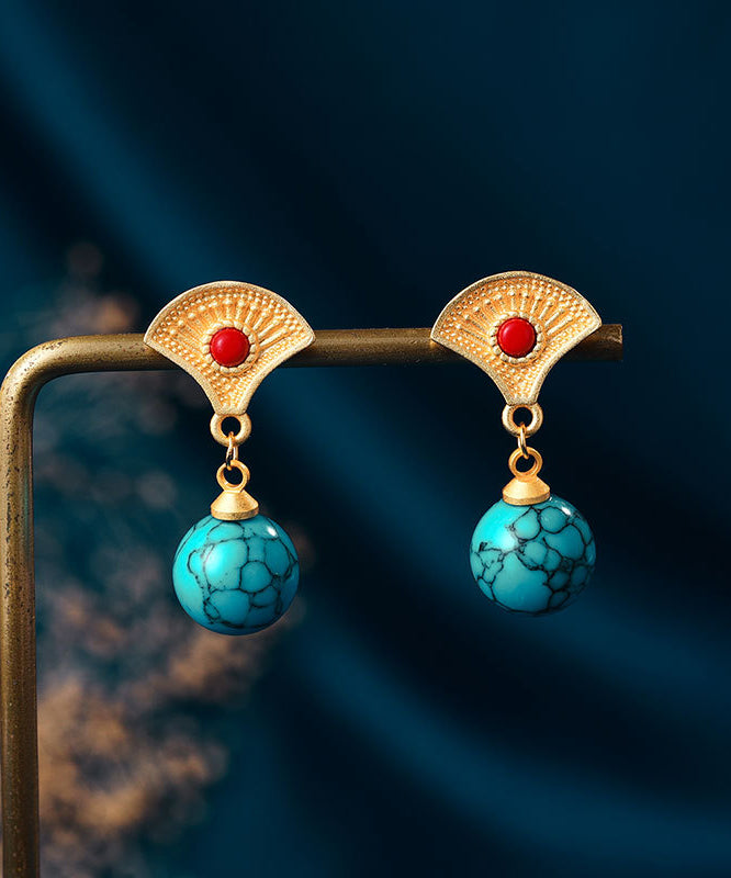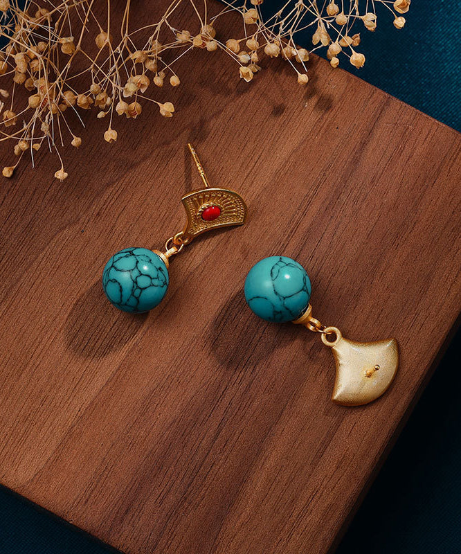 Stilvolle grüne Tropfenohrringe aus vergoldetem Sterlingsilber mit eingelegtem Türkis
