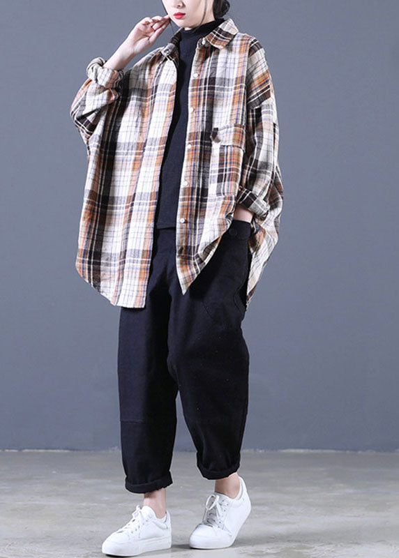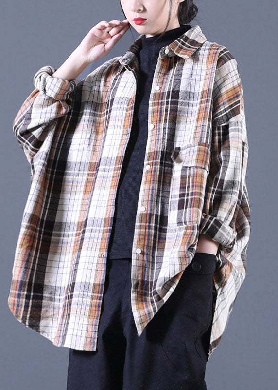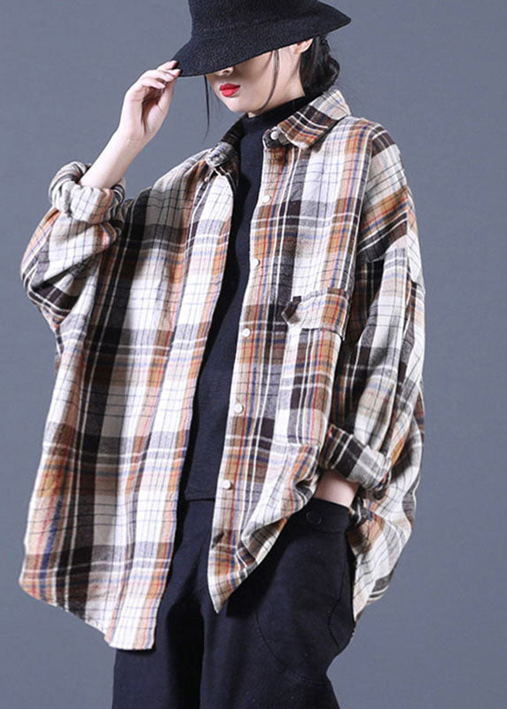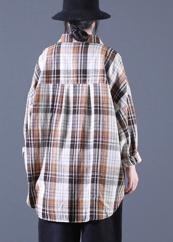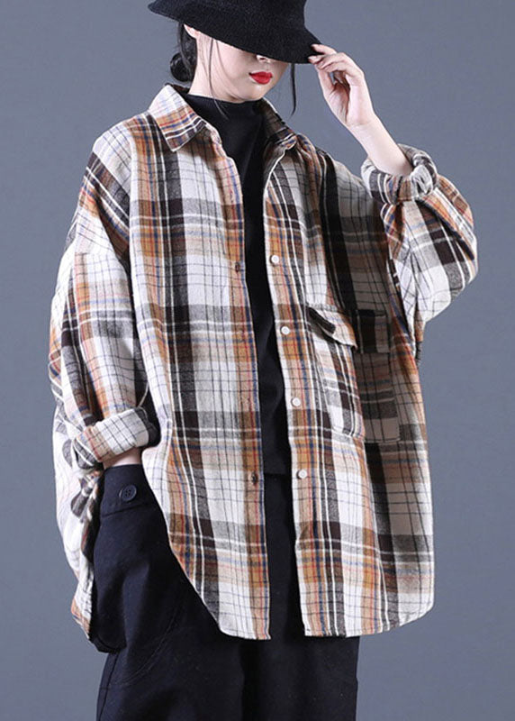 Stilvolles Khaki PeterPan Kragen Taschen Knopf Herbst Langarmhemd