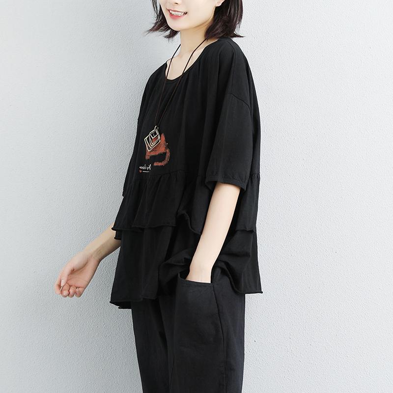 Stilvolles T-Shirt aus natürlicher Baumwolle Locker sitzende, lockere Damen-Baumwoll-Rundhals-Print-Weiß-Tops