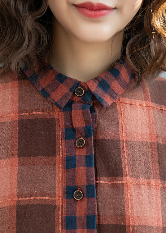 Stilvolle orange karierte Patchworkkleider mit kurzen Ärmeln
