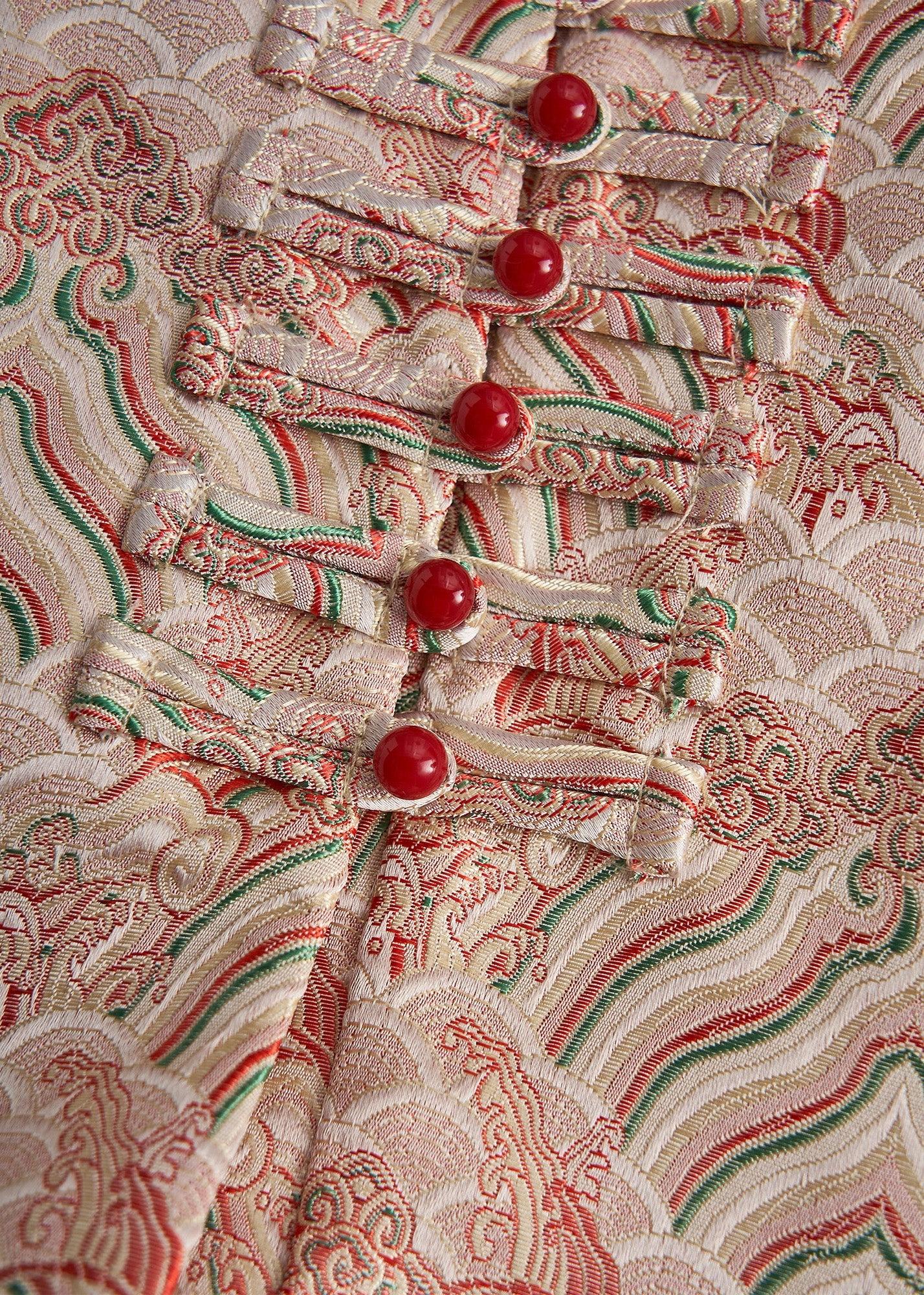 Stylish Pink Jacquard Patchwork Chinese Button Silk Vests Fall