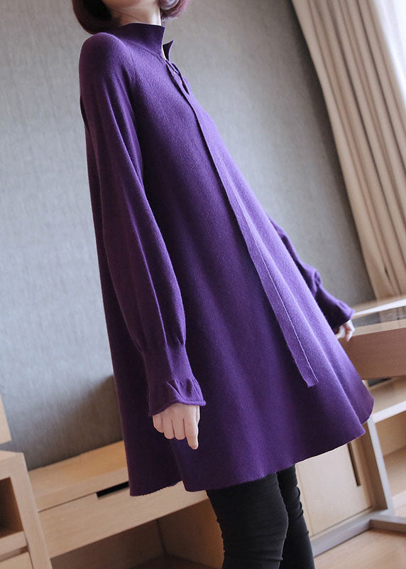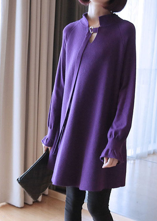 Stilvolle lila V-Ausschnitt Patchwork lose Herbst Strickpullover