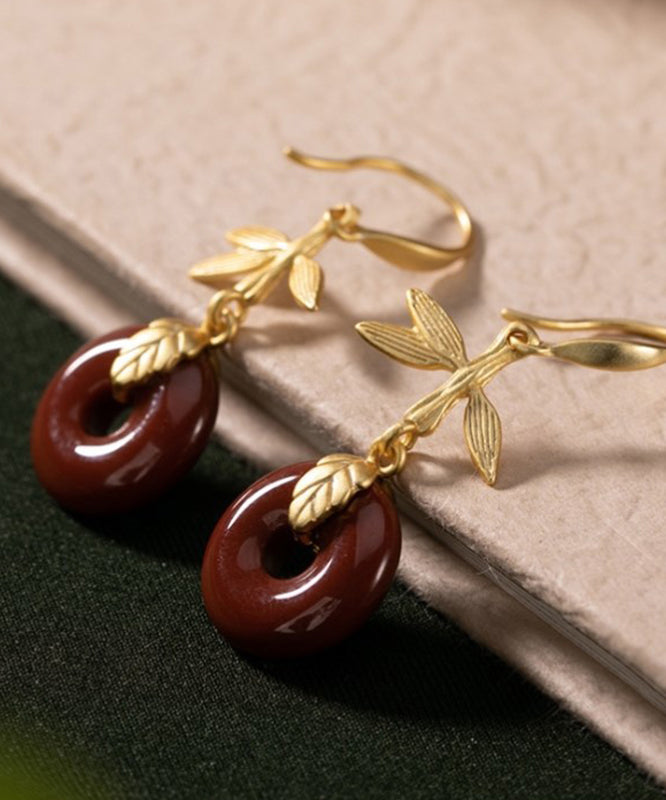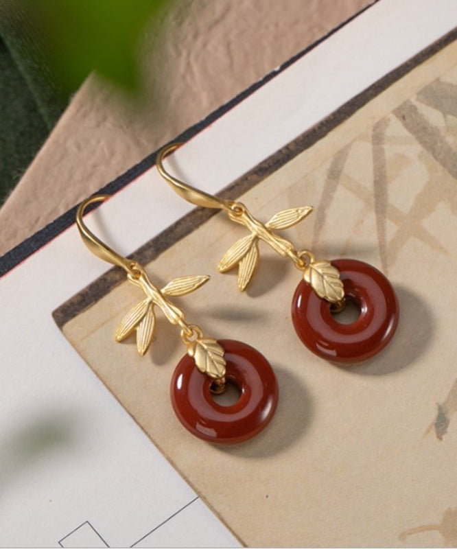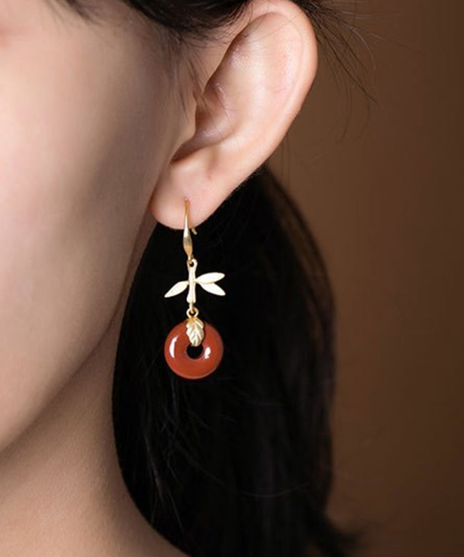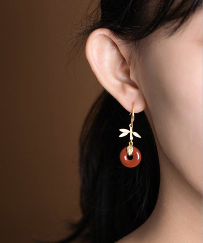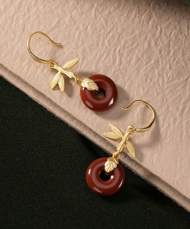 Stilvolle rote Bowlder-Tropfenohrringe aus vergoldetem Sterlingsilber