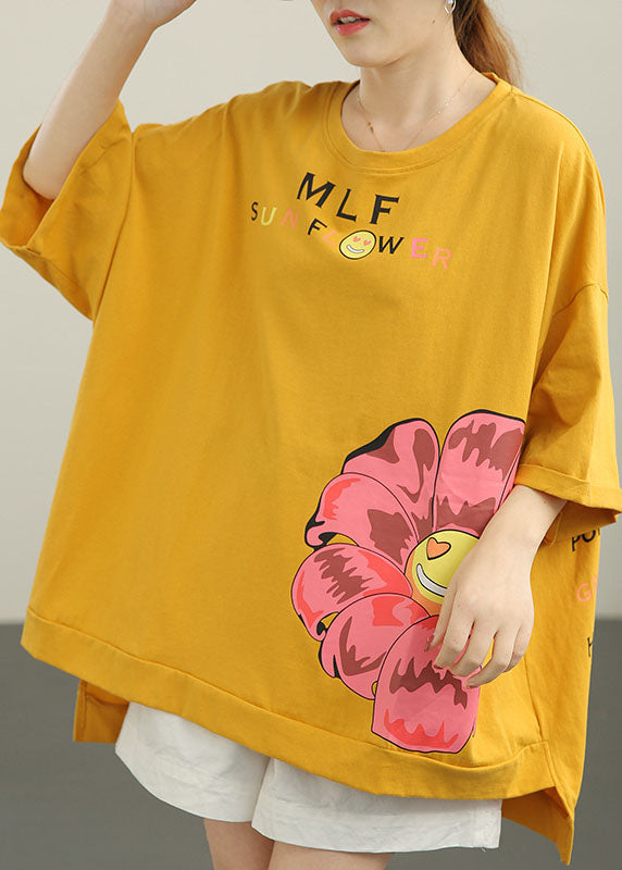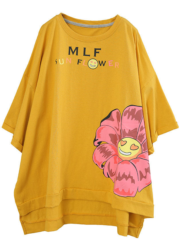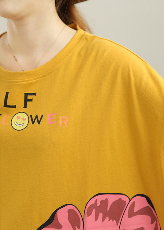 Stilvolles gelbes, lockeres O-Ausschnitt-Print-Design mit niedrigem und hohem Design