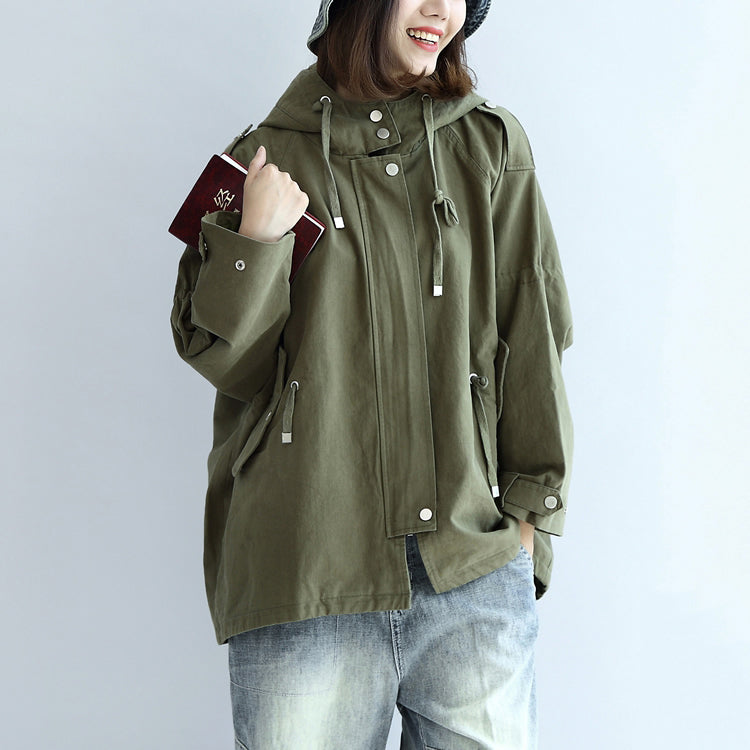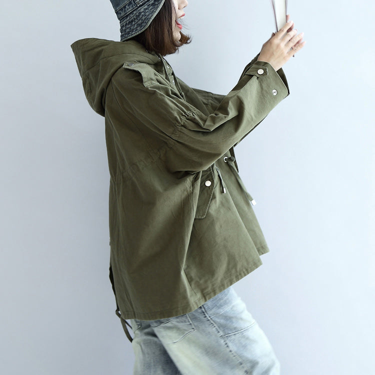 Teegrüne übergroße Trenchcoats in Übergröße mit kurzen Kapuzenpullovern