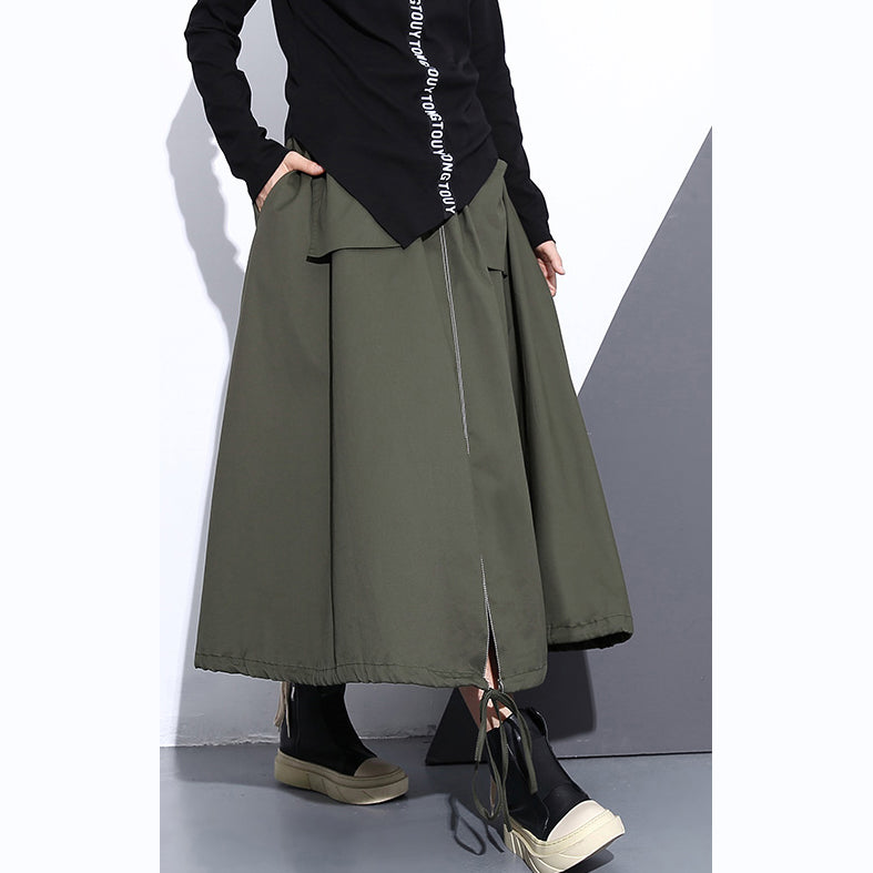 Hochwertiger armeegrüner Rock aus natürlicher Baumwolle, übergroße A-Linien-Röcke, Reise-Boutique-Taschen, Baumwollrock mit Kordelzug