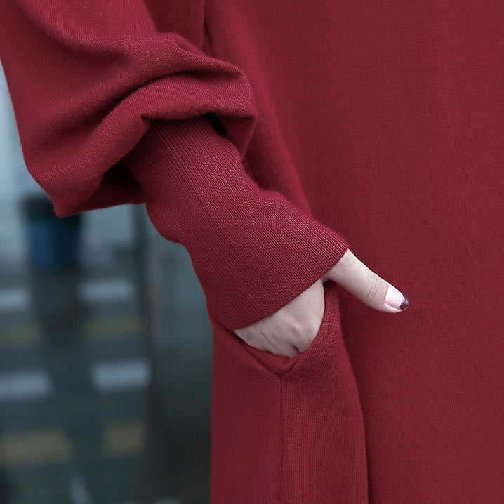 Top qualität schwarz herbst kleid plus größe kleidung stehkragen 2018 taschen baggy kleider
