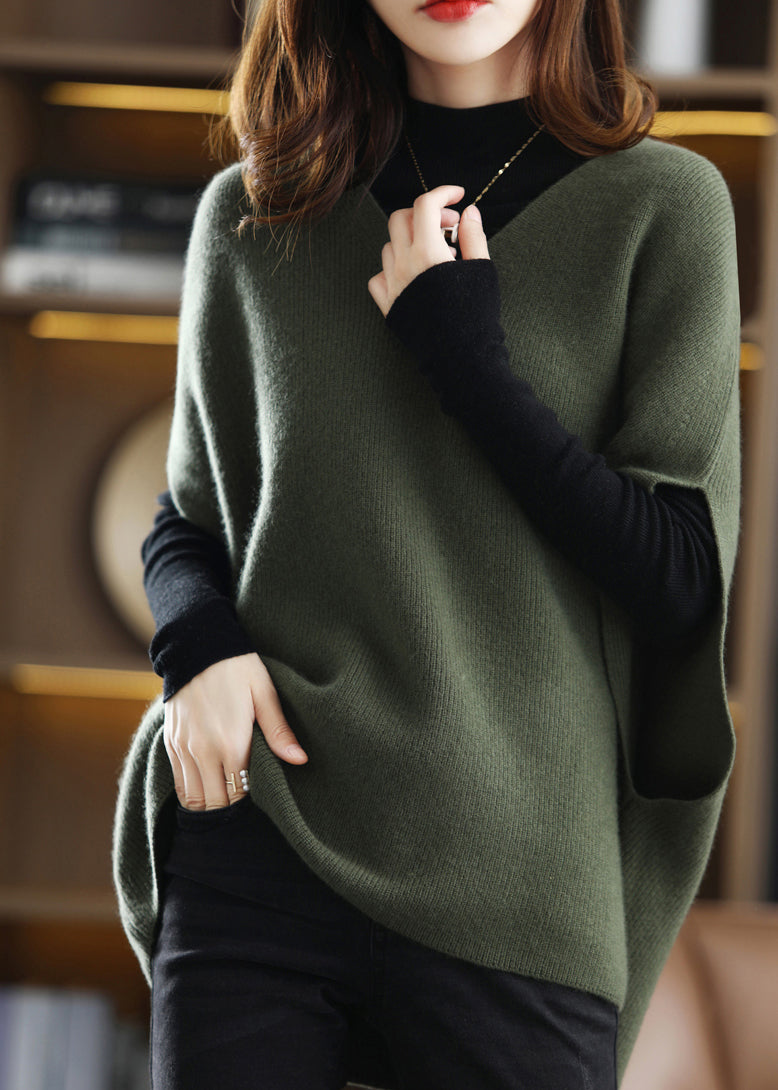 2025 blackish green V Neck thick Knit Vest Sleeveless