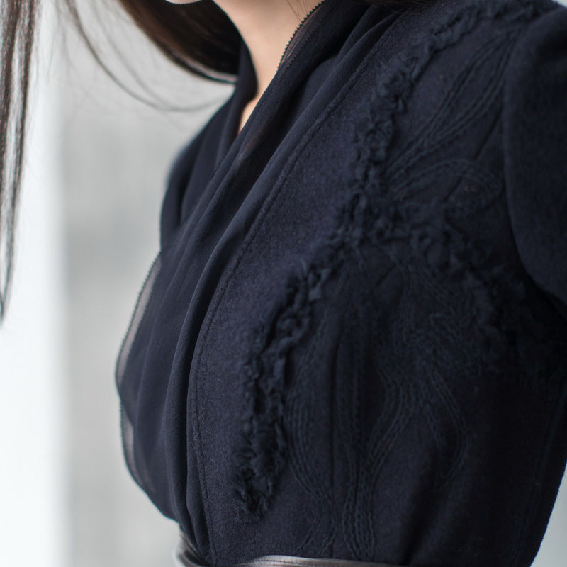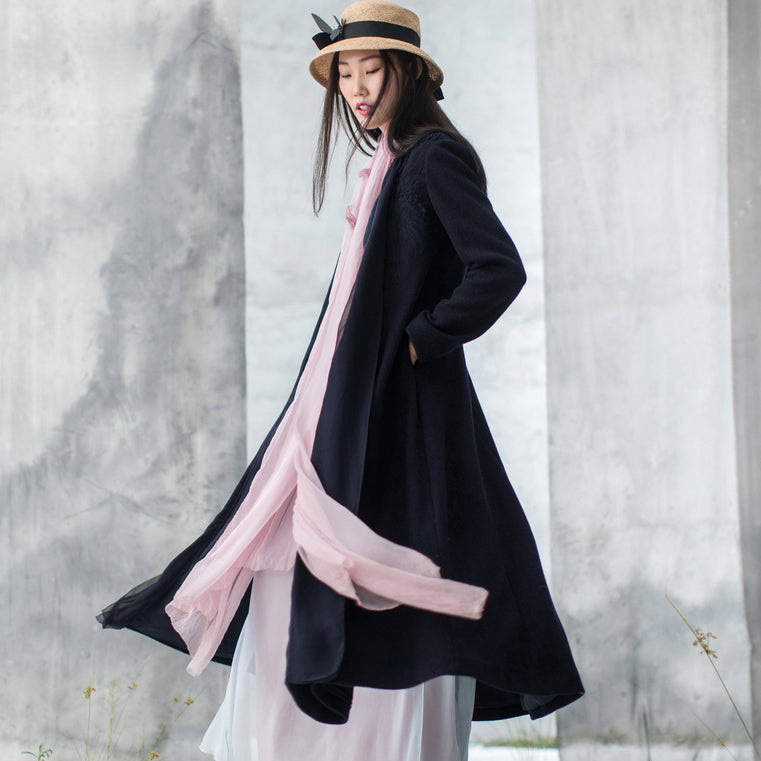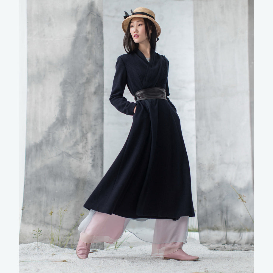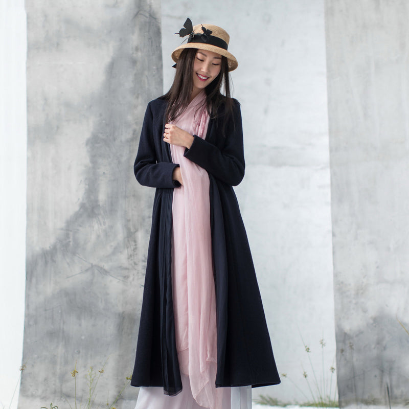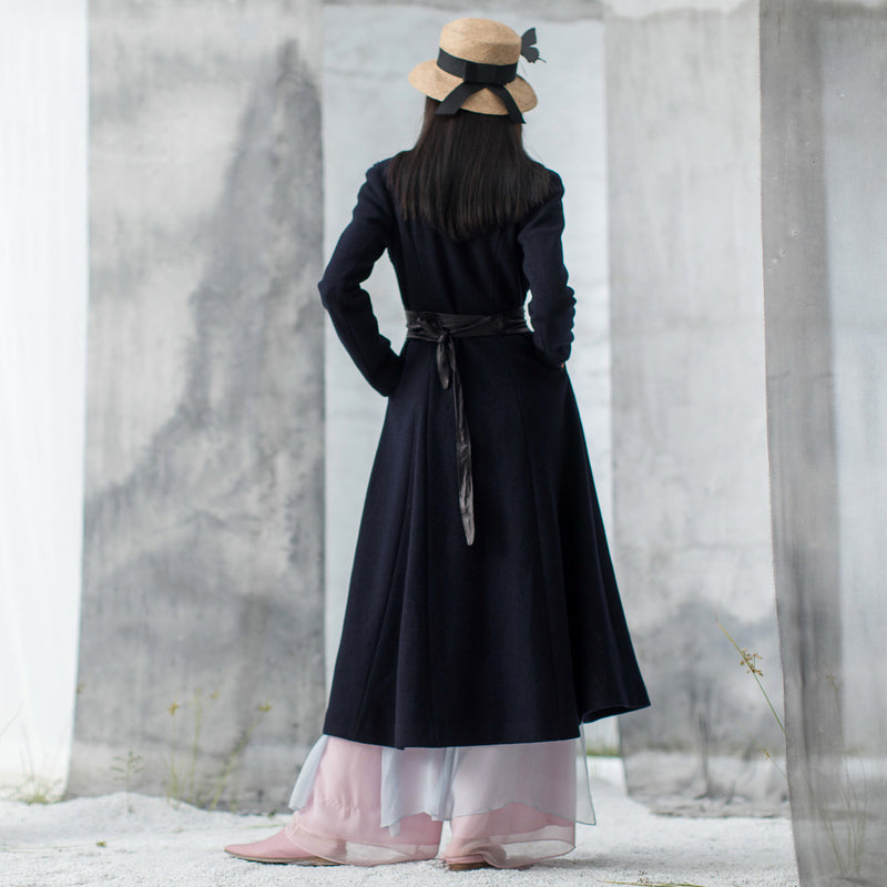 feine marineblaue Wollmäntel in Übergröße Wintermantel Langarmjacken