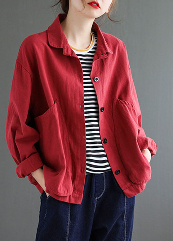 2022 roter Knopf Peter Pan Kragen Mäntel Langarm