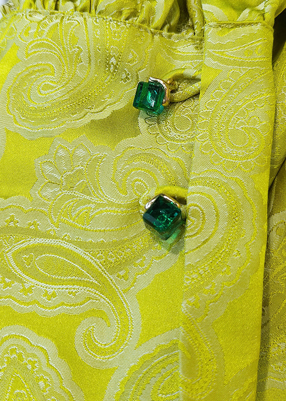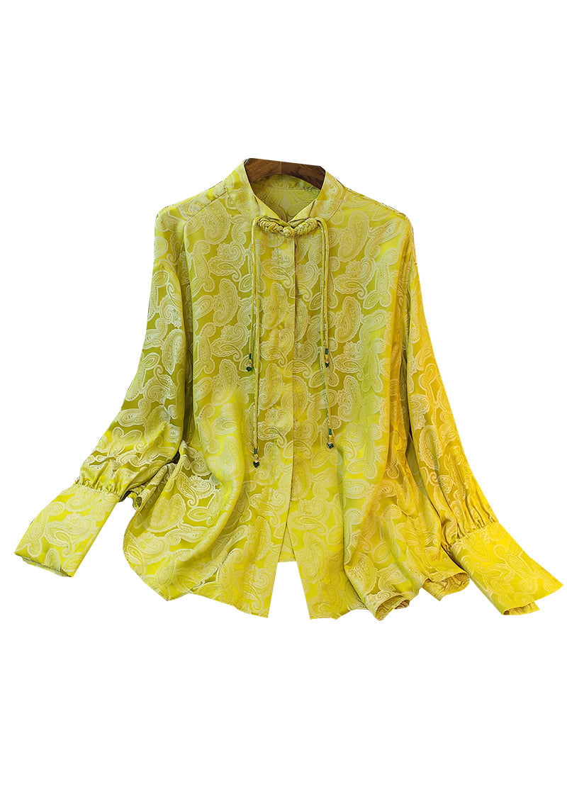 Top qualität Gelb Stehkragen Jacquard Seide Blusen Langarm