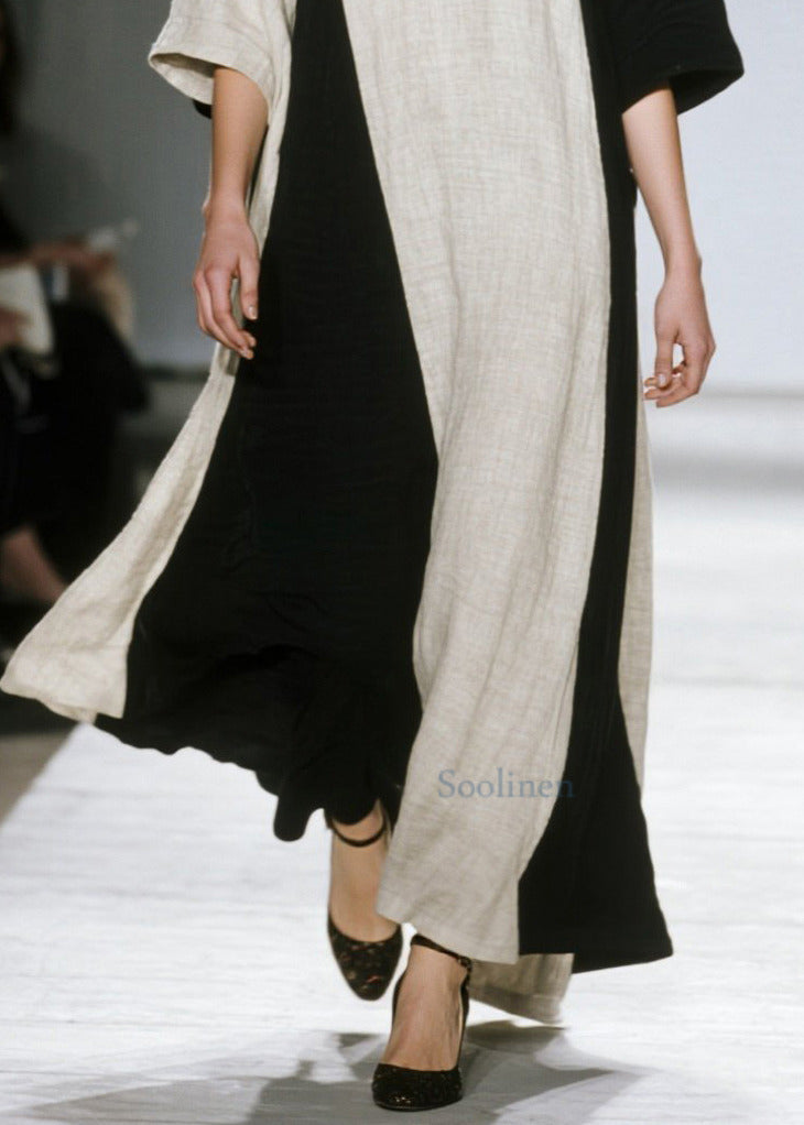 Unique Colorblock Oversized Patchwork Cotton Ankle Dress Half Sleeve