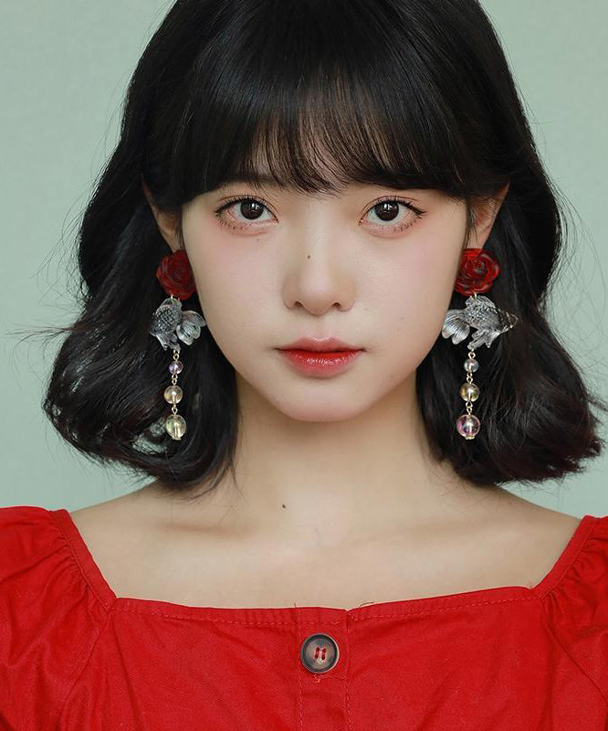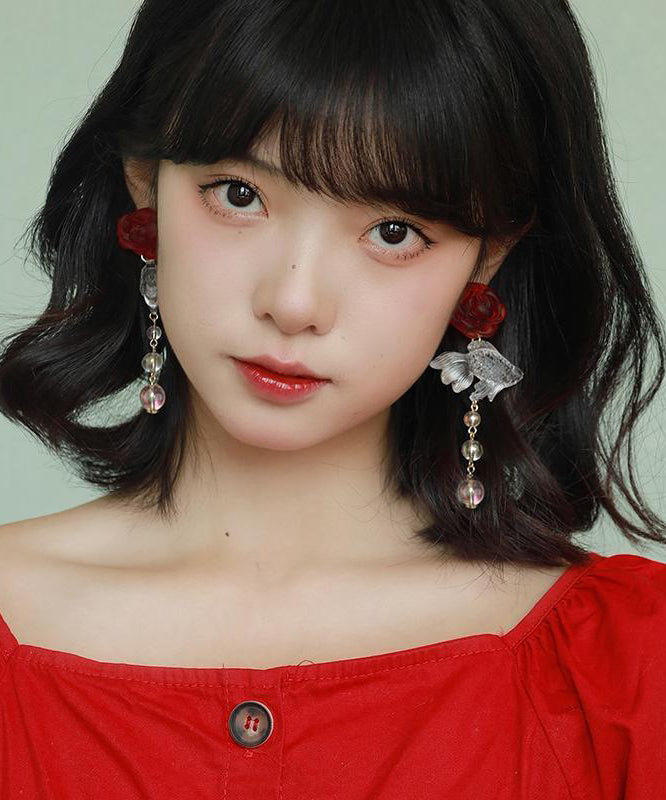 Unique Floral Transparent Goldfish Crystal Tassel Long Earrings