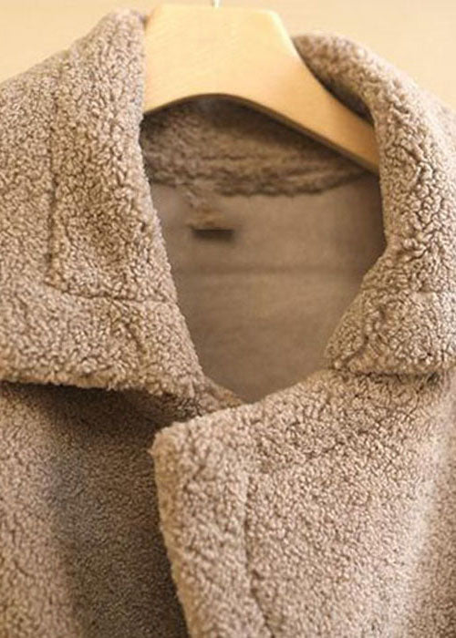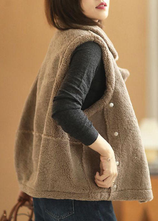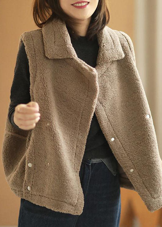 Einzigartige khakifarbene Weste mit Peter-Pan-Kragen und Kunstpelz, ärmellos