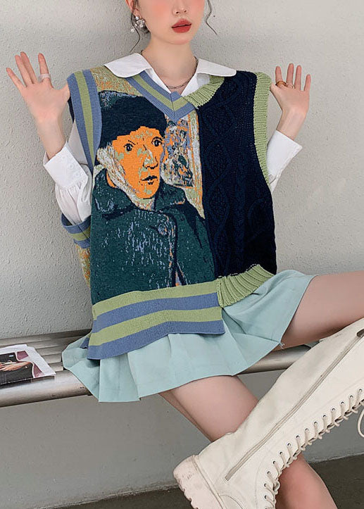 Einzigartige orange Patchwork asymmetrisches Design Print Herbst Strickweste
