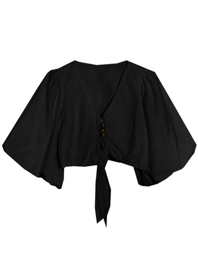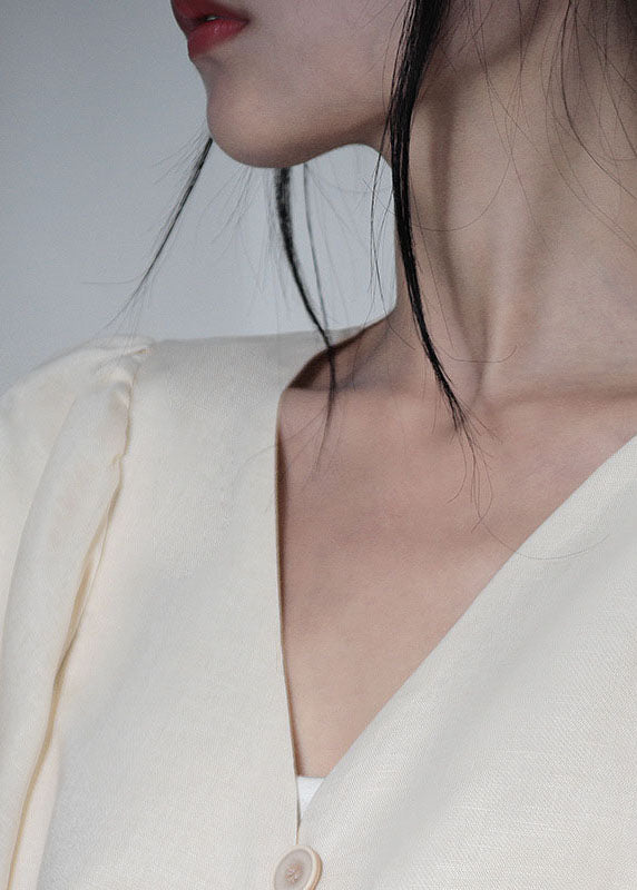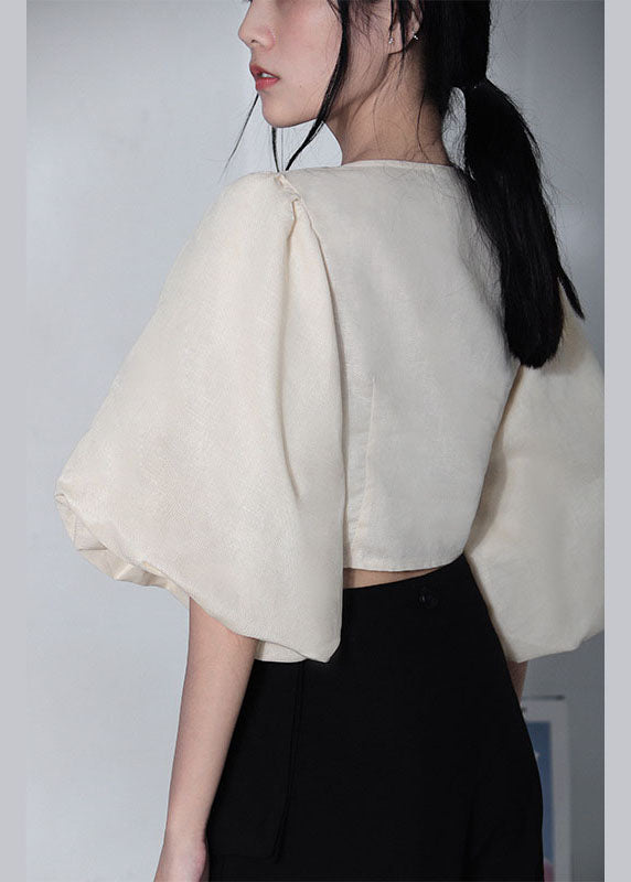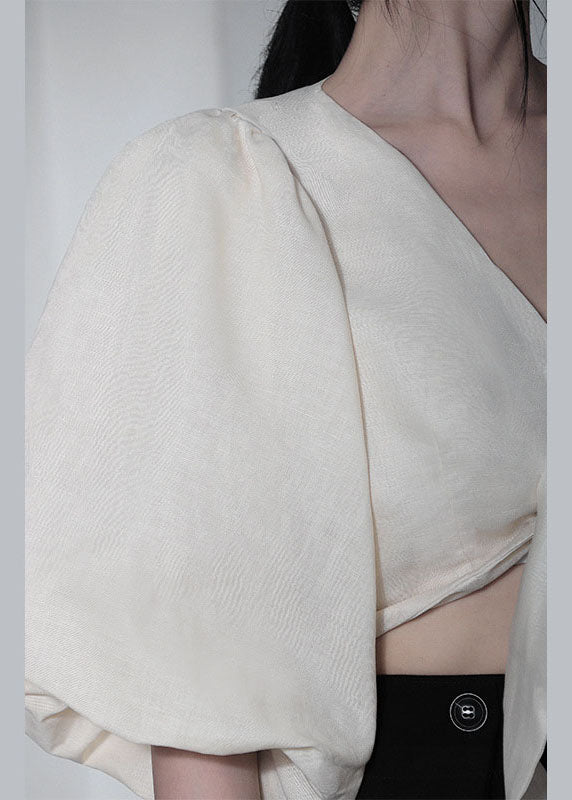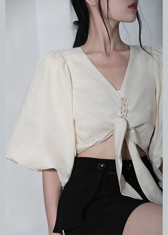 Einzigartige weiße V-Ausschnitt Retro lose Sommer Blusen Halbarm
