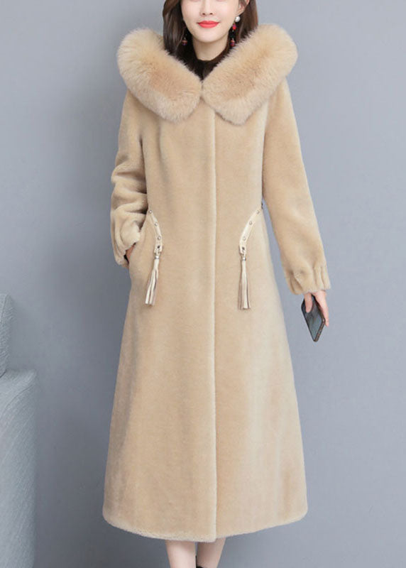Vintage Beige Mode Nagelperle Dicker Winter Langarm Parka