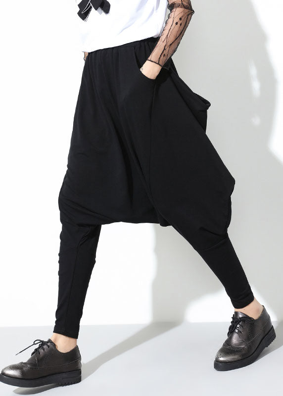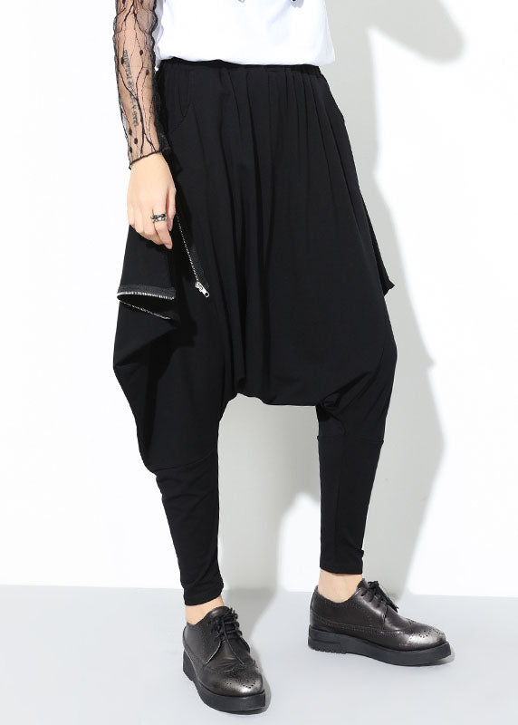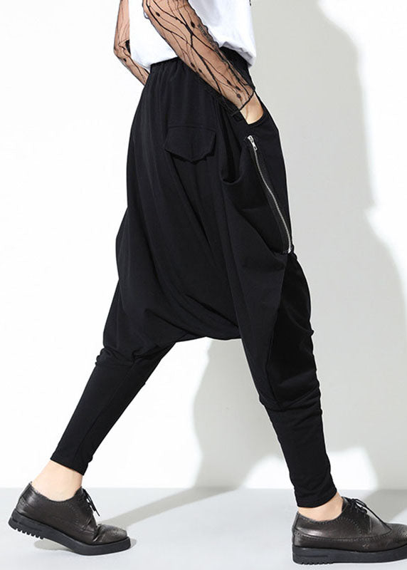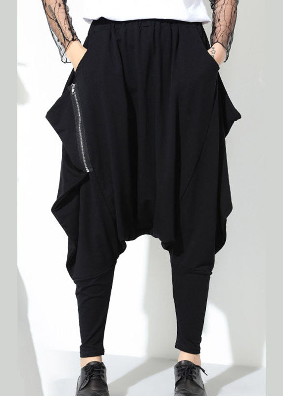 Vintage Schwarze Patchworktaschen mit Reißverschluss Lässige Haremshose für den Herbst