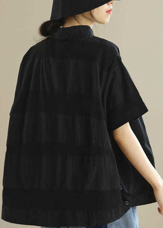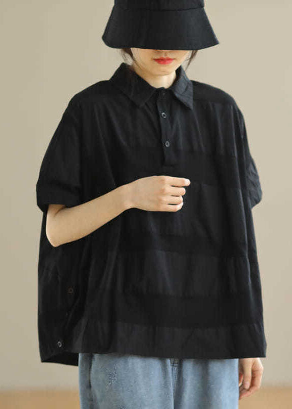 Vintage Schwarz PeterPan Kragen Knopf Lose Herbst Shirts Halbarm